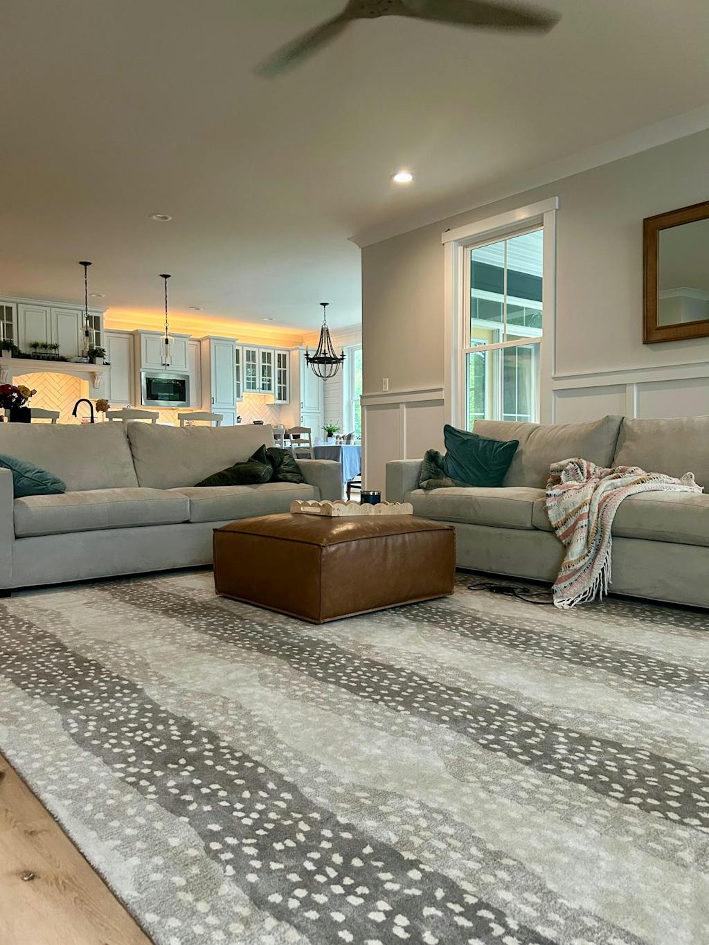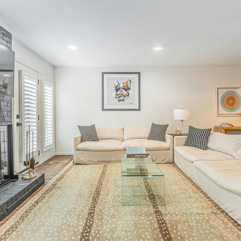 - Living Rooms: Ideally, your rug should fit under the front legs of all seating.