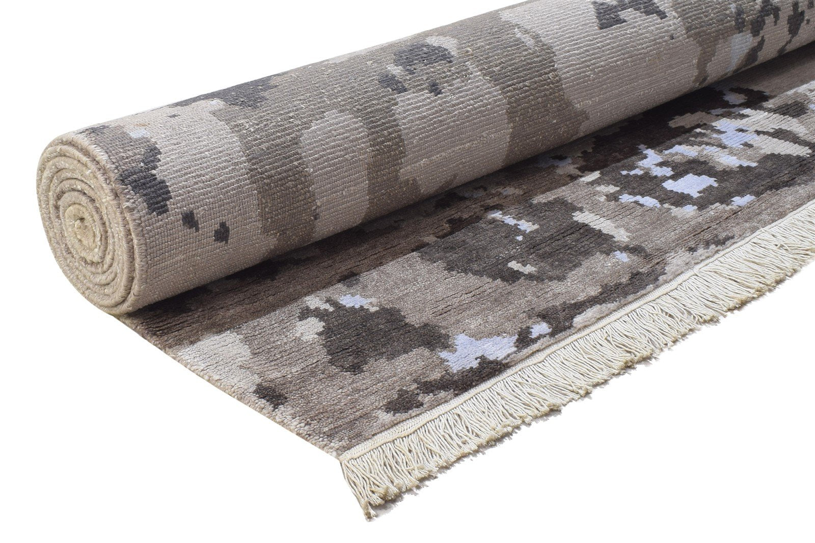 Gray, Modern, Handmade, Hand knotted (8x10)